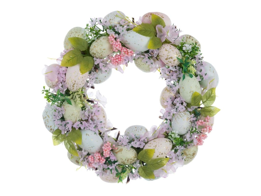 Veniec je vyrobený z materiálu polyfoam a plastica, vďaka čomu je ľahký, odolný a vhodný na opakované sezónne použitie. Dekoratívne vajíčka vytvárajú hravý veľkonočný akcent a prinesú do domova sviežu jarnú atmosféru.