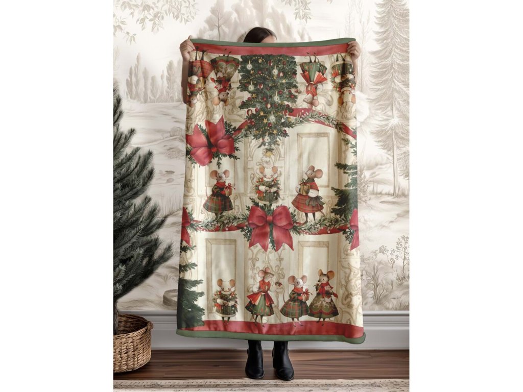 Veľká a mimoriadne jemná vianočná deka od talianskej značky Blanc Maricló z kolekcie Noel Famille je dokonalým doplnkom na zimné večery. Vyrobená zo 100% polyesteru s gramážou 420 gsm, poskytuje výnimočné teplo a pohodlie. Deka je obojstranná, zdobená rozprávkovým motívom maľovaných vianočných myšiek a mašličiek v tradičných farbách – zelená, červená a biela. Originálny dizajn z toskánskej dielne Blanc Maricló v sebe spája kvalitu, štýl a sviatočnú atmosféru.
