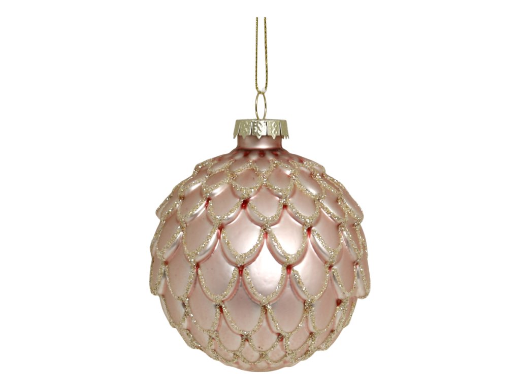 Vianočná ozdoba – ručne maľovaná, ružová, priemer 8 cm, sklo, Chic Antique.