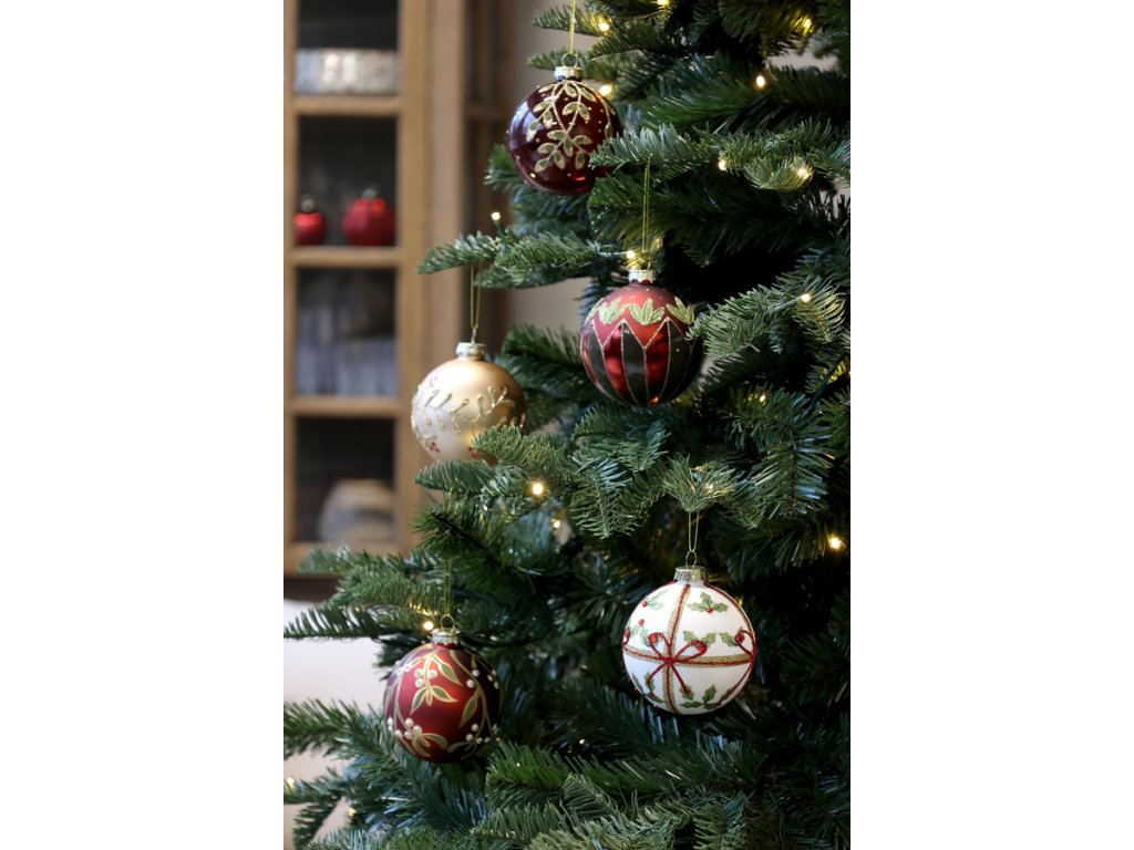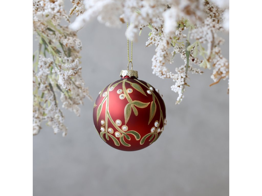 Vyrobená z kvalitného skla, s priemerom 8 cm, je ideálna na ozdobenie stromčeka, vencov, aranžmánov alebo ako súčasť sviatočnej výzdoby interiéru. Motív imela symbolizuje lásku, pokoj a šťastie – presne to, čo by nemalo chýbať počas Vianoc.