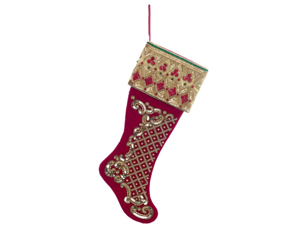 ✅ Vianočná ponožka na dekoráciu ✅ Červená so zlatými detailmi – goráliky a perličky ✅ Rozmer: 60 cm – výrazný doplnok ✅ 100 % polyester – odolný materiál ✅ Kolekcia Cantus Natalis – Blanc Mariclo