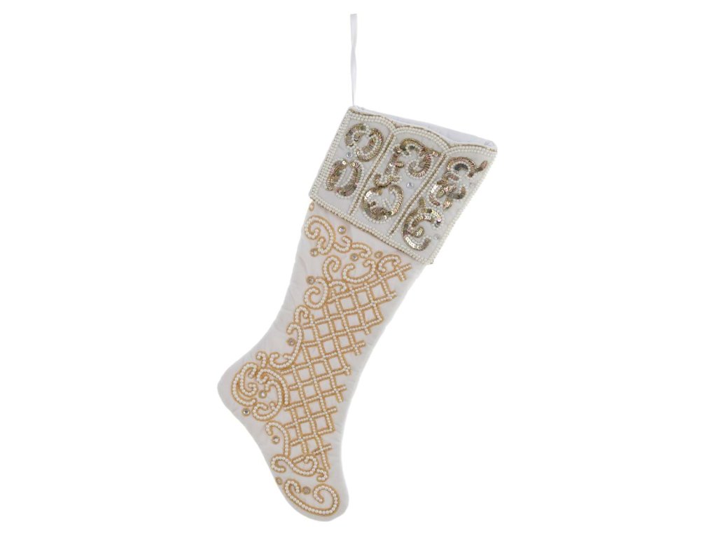 Vianočná dekoračná ponožka Blanc Mariclo – biela so zlatými gorálikmi, 52 cm, kolekcia Cantus Natalis