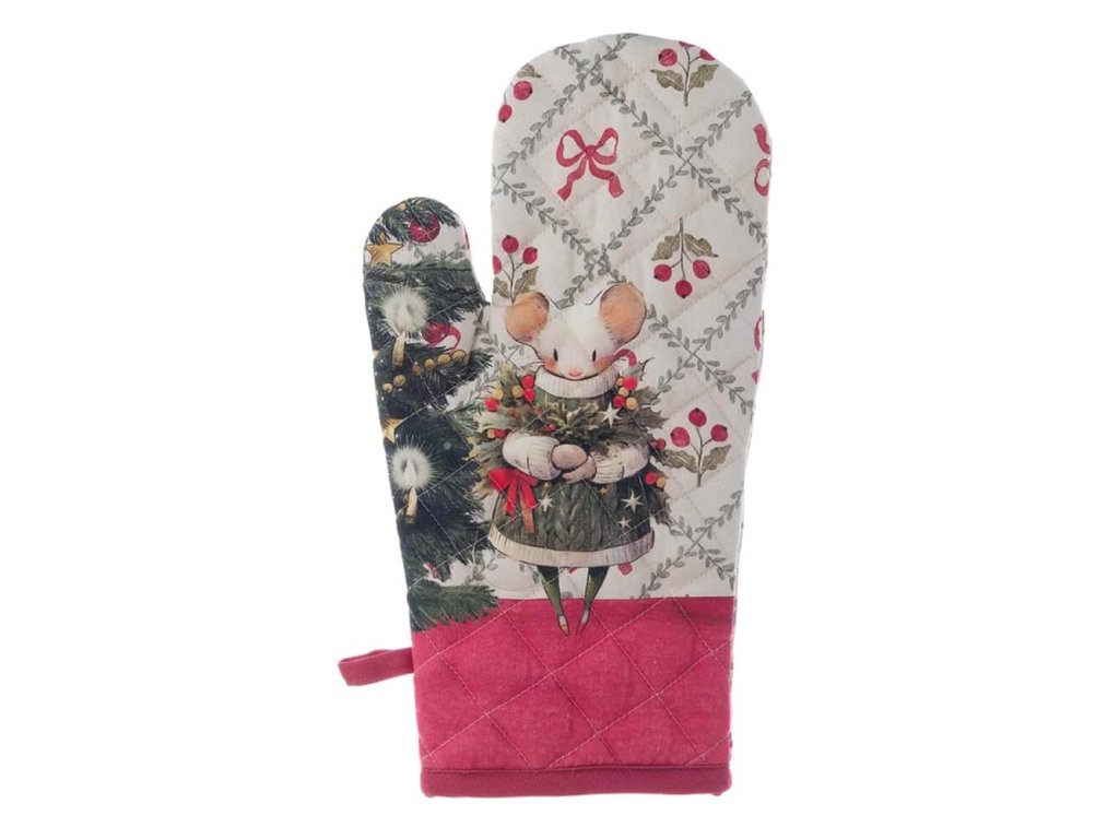 Štýlová vianočná kuchynská chňapka v tvare rukavičky od talianskej značky Blanc Maricló z kolekcie Noel Famille je praktickým a zároveň dekoratívnym doplnkom do sviatočnej kuchyne. Vyrobená z 100% bavlny, zdobená rozkošným motívom maľovaných vianočných myšiek v tradičných farbách – zelená, červená a biela. Tento originálny výrobok z toskánskej dielne spája funkčnosť, kvalitu a taliansky šarm.