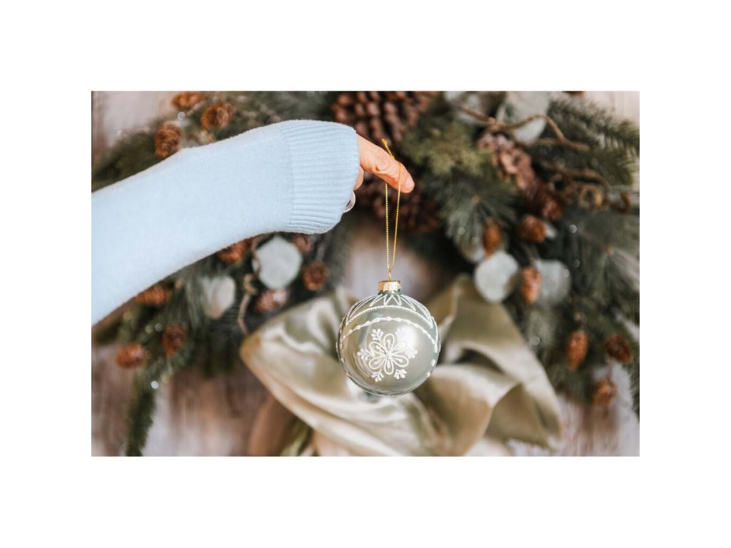Elegantná vianočná guľa na zavesenie od renomovaného talianskeho výrobcu Blanc Mariclò je ručne zdobená jemným bielym ornamentom, ktorý jej dodáva romantický a slávnostný vzhľad. Vyrobená s dôrazom na detail v talianskej toskánskej dielni, predstavuje originálny kúsok, ktorý ozdobí váš vianočný stromček či interiér.