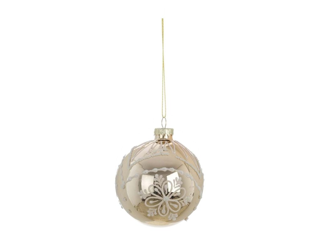 Elegantná vianočná guľa na zavesenie od renomovaného talianskeho výrobcu Blanc Mariclò je ručne zdobená jemným bielym ornamentom, ktorý jej dodáva romantický a slávnostný vzhľad. Vyrobená s dôrazom na detail v talianskej toskánskej dielni, predstavuje originálny kúsok, ktorý ozdobí váš vianočný stromček či interiér.