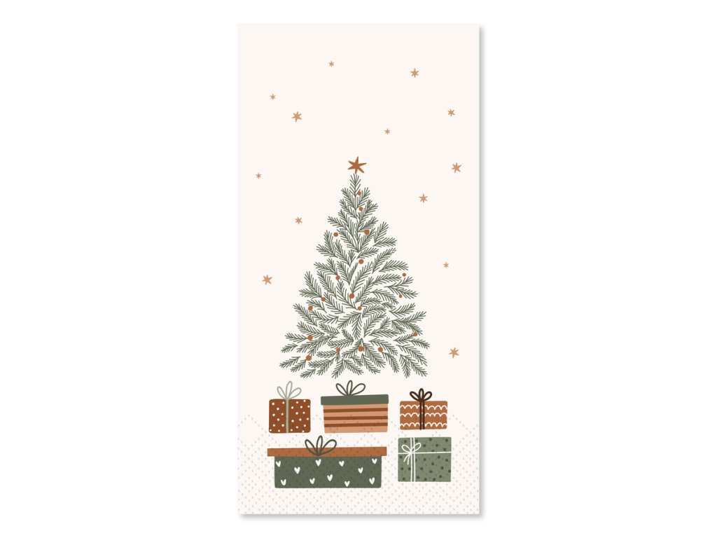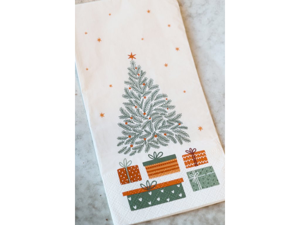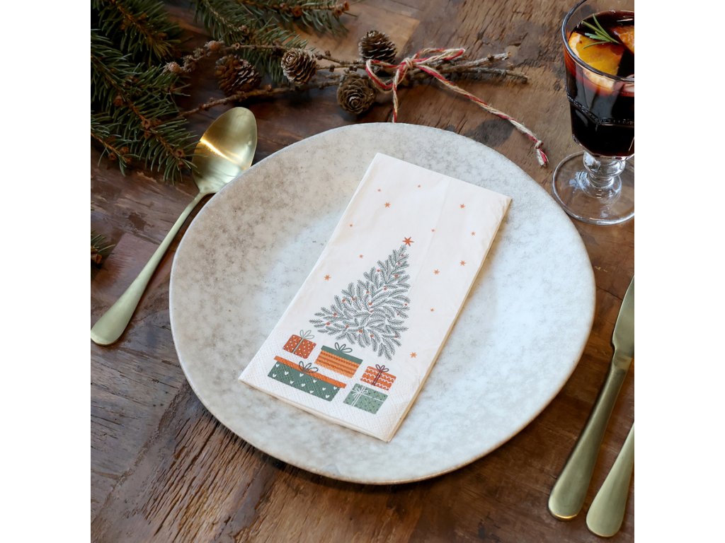 Vytvorte sviatočnú atmosféru do posledného detailu s elegantnými papierovými servítkami s motívom vianočného stromčeka a darčekov od značky Chic Antique. Servítky majú krémový podklad s jemnou grafikou zeleného stromčeka, ktorá pôsobí štýlovo a zároveň útulne.