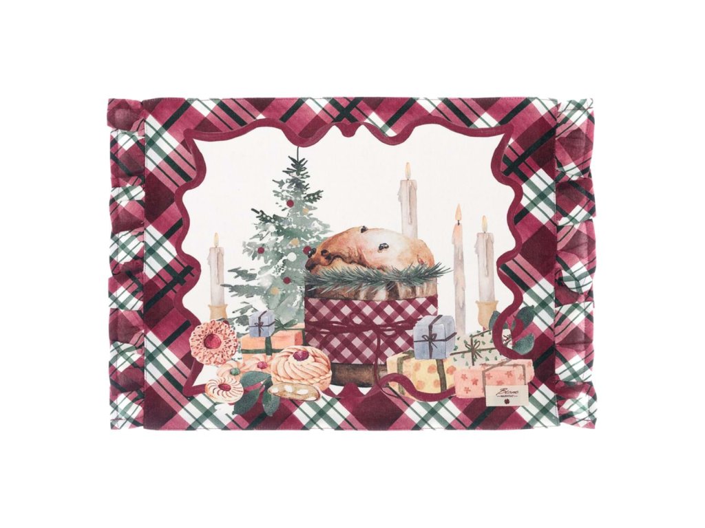 Vianočné bavlnené prestieranie s volánikom z kolekcie La Patisserie od toskánskeho výrobcu Blanc Mariclò.