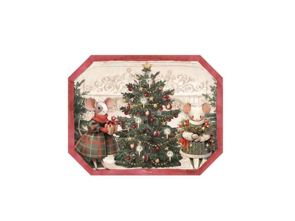 Praktické a zároveň dekoratívne vianočné vinylové prestieranie od talianskej značky Blanc Maricló z kolekcie Noel Famille je ideálnym doplnkom na sviatočný stôl. Prestieranie má rozmer 45 × 35 cm a je vyrobené z odolného vinylu, ktorý je ľahko udržiavateľný. Zdobené jemným motívom maľovaných vianočných myšiek a mašličiek v tradičných farbách – zelená, červená a biela. Originálny výrobok z toskánskej dielne Blanc Maricló.