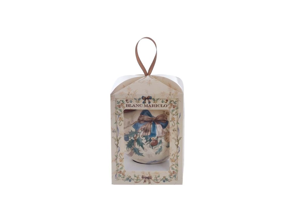 Štýlová vianočná ozdoba v darčekovej krabičke od talianskej značky Blanc Maricló z kolekcie Intrecci di Sogno je ideálnym doplnkom na sviatočné dekorovanie alebo ako elegantný darček. Ozdoba s priemerom 10 cm je vyrobená z ľahkého lesklého plastu a zdobená romantickým motívom ornamentov, ozdôb a mašličiek. Balená je v krásnej zelenej krabičke s hnedou mašľou, ktorá podčiarkuje jej výnimočný charakter. Tento originálny výrobok z toskánskej dielne je navrhnutý s dôrazom na detail, estetiku a taliansky šarm.