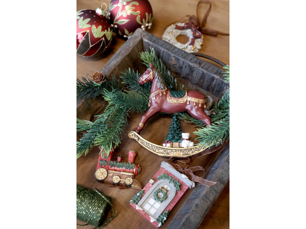Noël Rocking Horse – vianočný hojdací koník, červeno-zelený, H14/L14/W3,5 cm, Chic Antique.