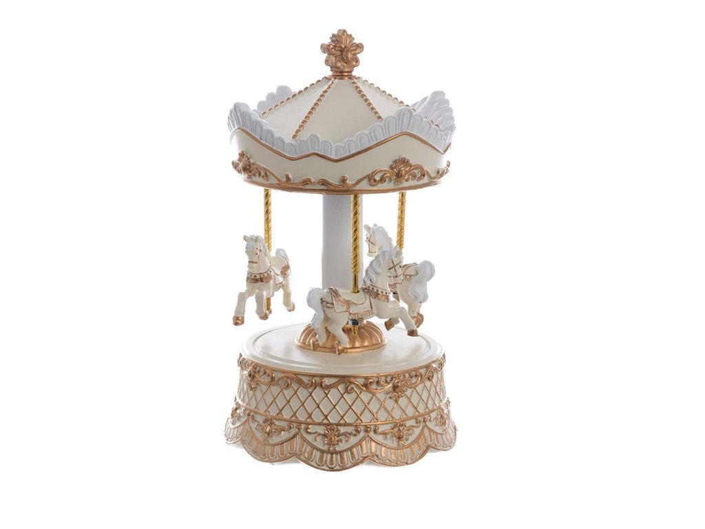 Vianočná dekorácia kolotoč Blanc Mariclo – biela so zlatými detailmi, kolekcia Dora, 12,4 × 22,9 cm
