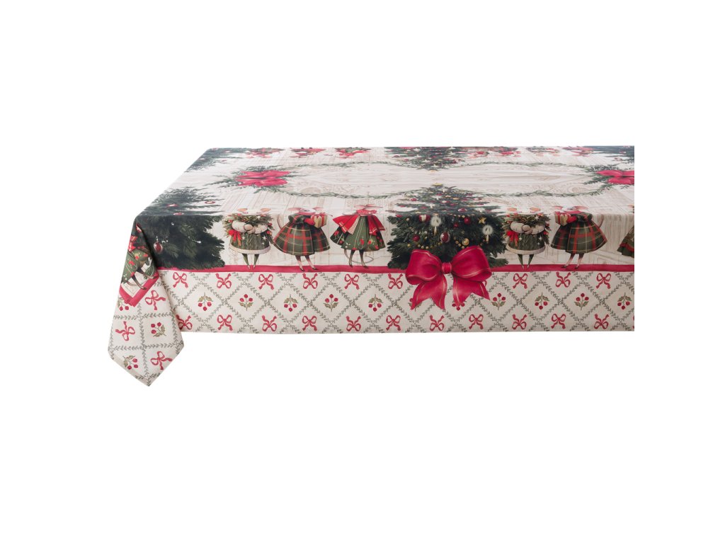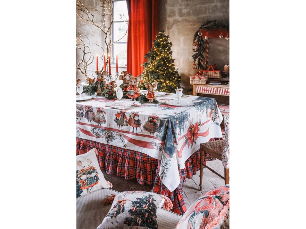 Vianočný obrus Blanc Maricló – 150 × 220 cm, kolekcia Noel Famille, motív maľovaných myšiek