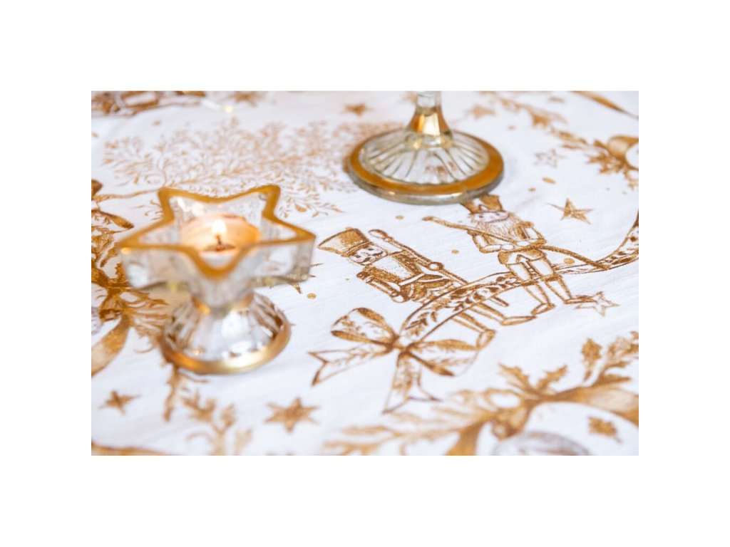 ✅ Veľký bavlnený obrus na Vianoce ✅ Motív Luskáčik, vojačikovia, vianočné gule ✅ Zlatobiela farba – elegantný dizajn ✅ 100 % bavlna – kvalitný prírodný materiál ✅ Blanc Mariclo – talianska značka s tradíciou