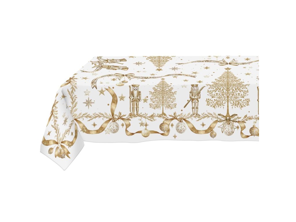 ✅ Veľký bavlnený obrus na Vianoce ✅ Motív Luskáčik, vojačikovia, vianočné gule ✅ Zlatobiela farba – elegantný dizajn ✅ 100 % bavlna – kvalitný prírodný materiál ✅ Blanc Mariclo – talianska značka s tradíciou