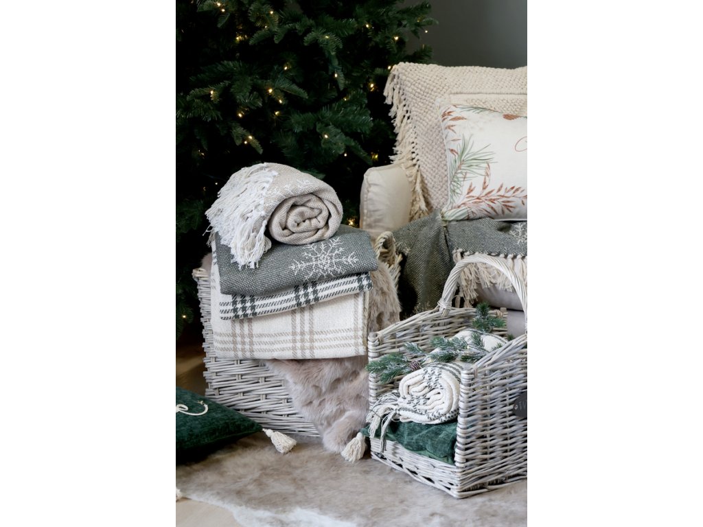Pléd Aix z prebytkovej priadze s vianočným vzorom – 150 × 130 cm, ručne tkaný, Chic Antique.