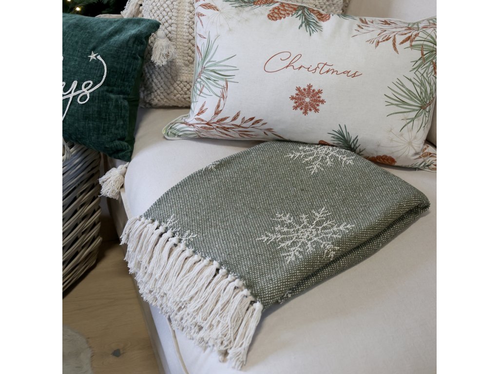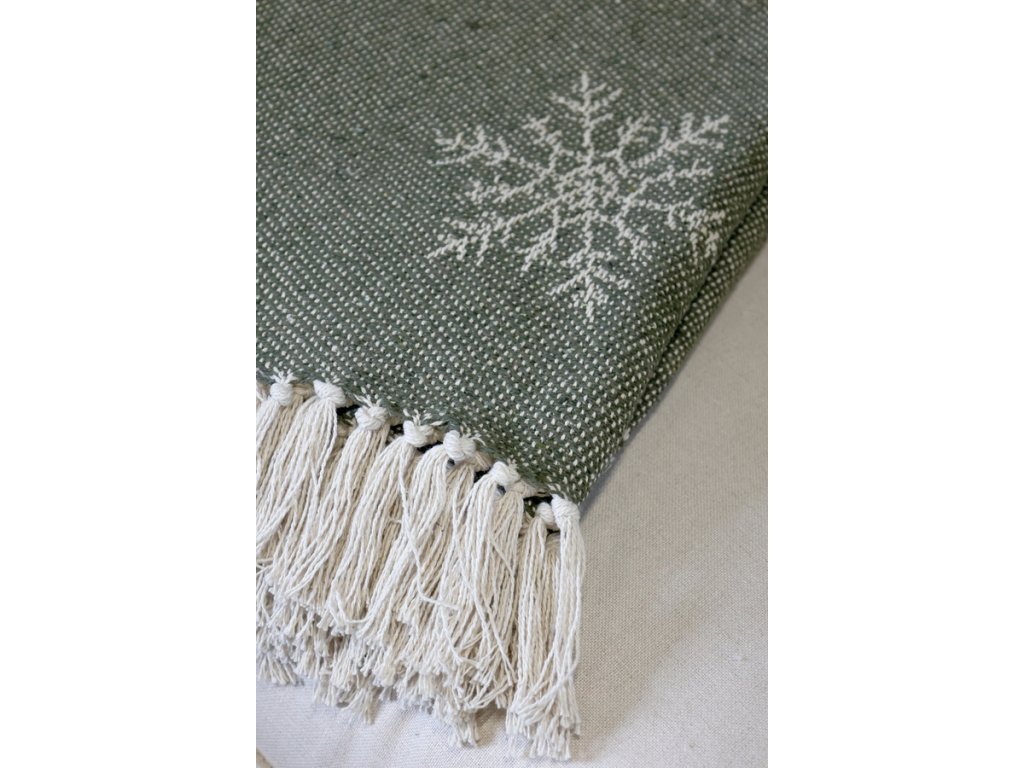 Zababušte sa do štýlu a udržateľnosti s elegantným plédom Aix z prebytkovej priadze od značky Chic Antique. Tento ručne tkaný kúsok v nadčasovom olivovom vzore snehových vločiek je vyrobený z kombinácie bavlny a recyklovaných vlákien, vďaka čomu je nielen príjemný na dotyk, ale aj šetrný k prírode.