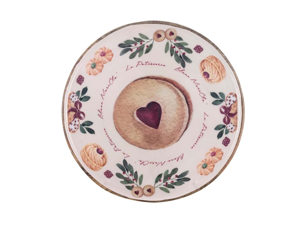 Vianočný drevený podnos s motívom koláčikov z kolekcie La Patisserie od toskánskeho výrobcu Blanc Mariclò.