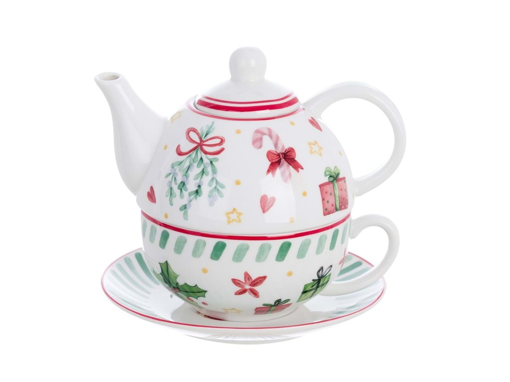 Porcelánový čajník so šálkou a podšálkou s vianočným motívom | Kolekcia Holl and Jolly | Blanc Mariclo