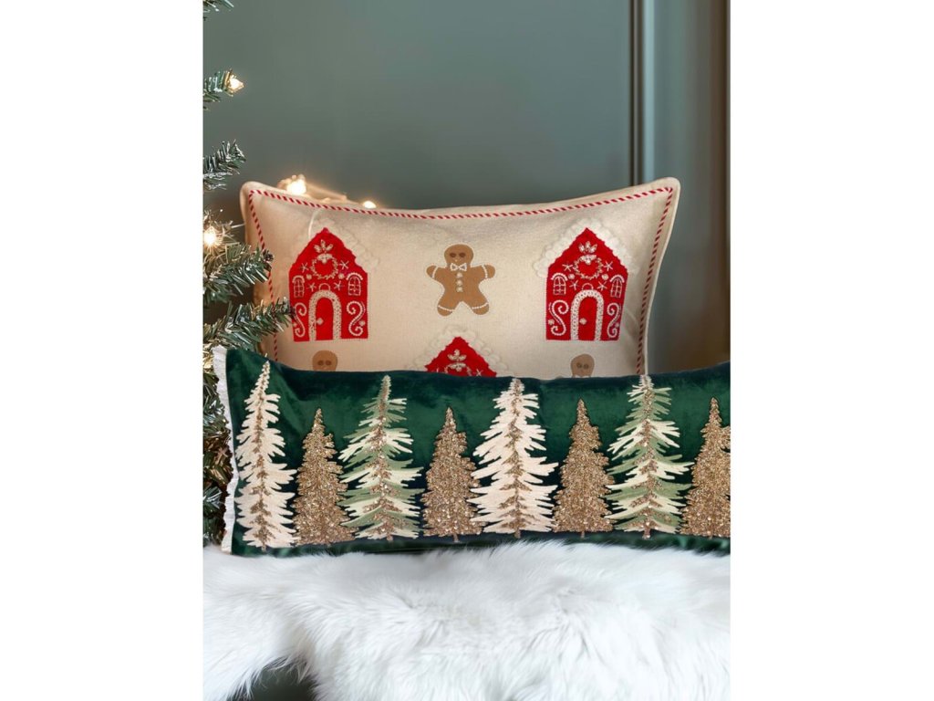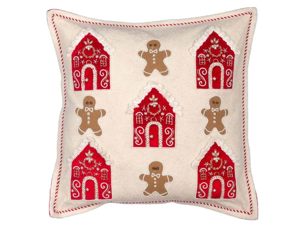 Vankúš má rozmer 50 × 50 cm a je bohato zdobený gorálikmi, našívanými motívmi domčekov a postavičky perníčka, ktoré dodávajú priestoru útulnú a hravú atmosféru. Vďaka romantickému štýlu značky Blanc Maricló je ideálny na pohovku, kreslo či posteľ počas vianočného obdobia.