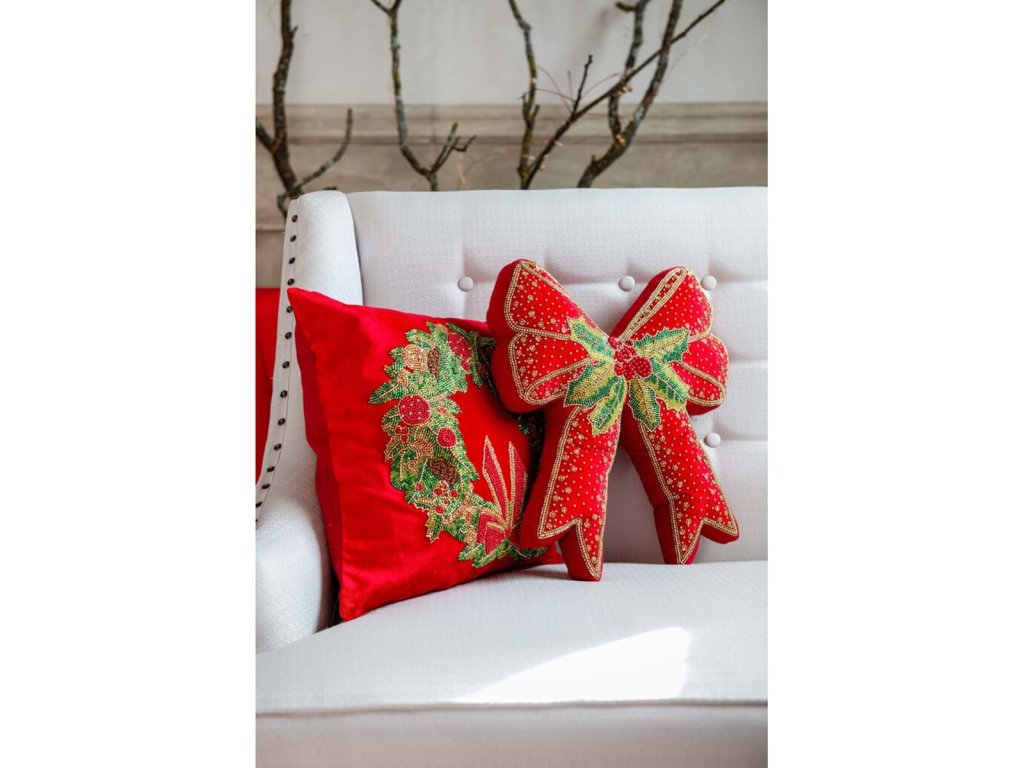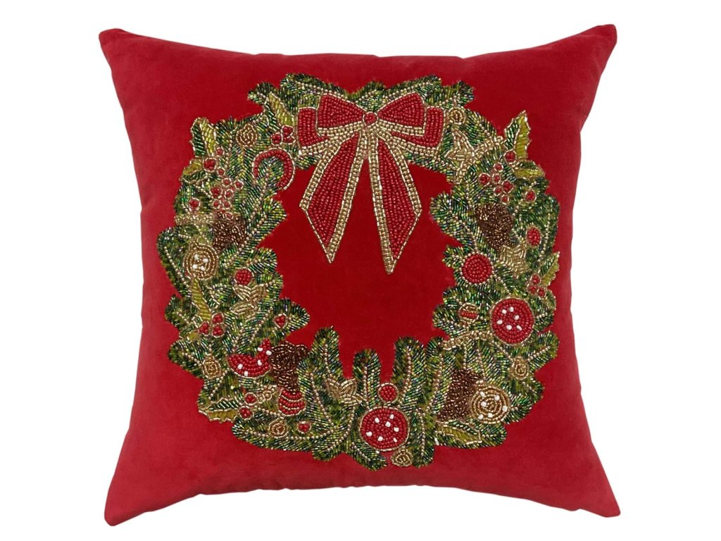 Vianočný vankúš Blanc Maricló – 45 × 45 cm, červený, výšivka venca s perličkami