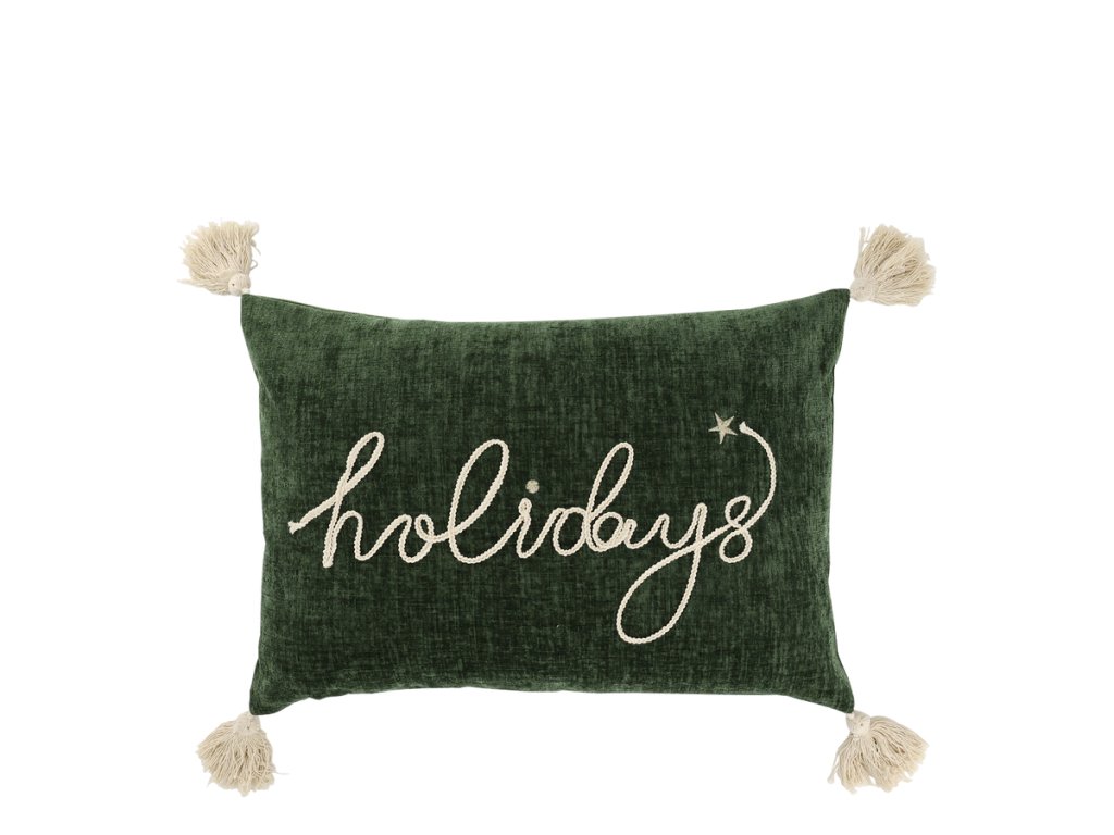 Obliečka na vankúš Aix so strapcami a nápisom Holidays – polyester, Chic Antique.