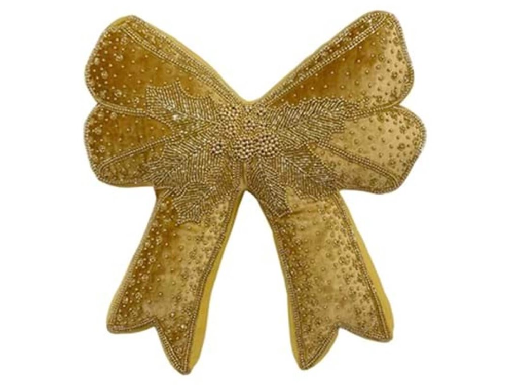 Originálny vianočný vankúš od talianskej značky Blanc Maricló je štýlovým doplnkom na sviatočné dekorovanie. Vyrobený z 100% bavlny, s mäkkou polyesterovou výplňou, zdobený zlatou výšivkou a perličkami. Žltý zamatový podklad dodáva tradičný vianočný vzhľad a elegantný charakter.