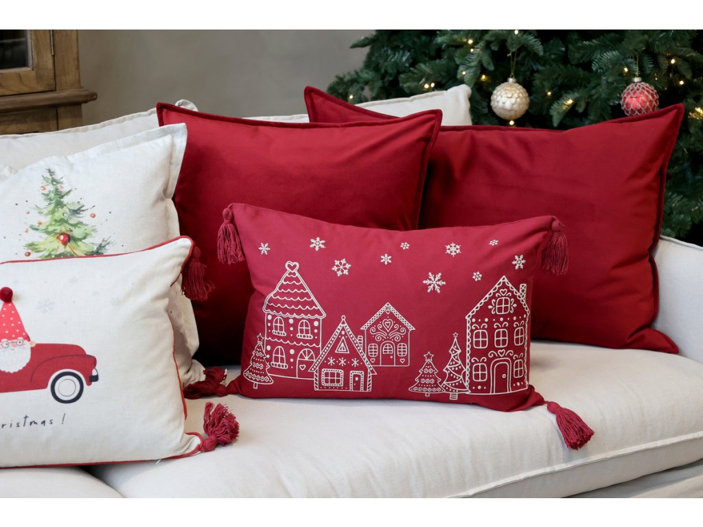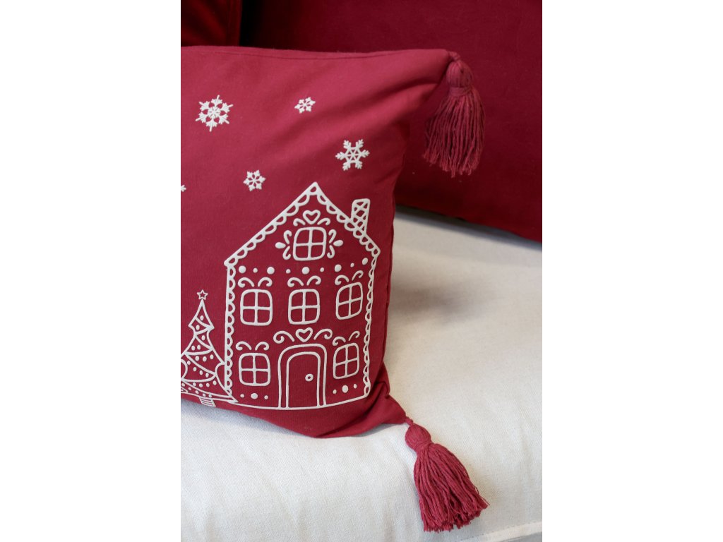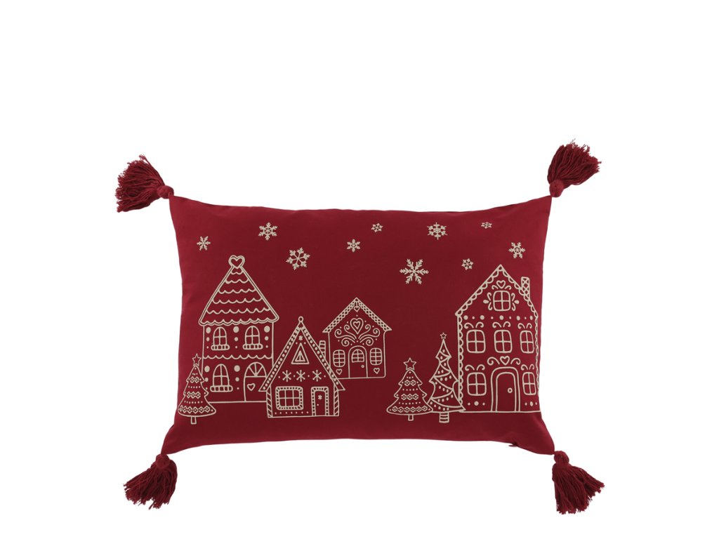 Vytvorte si útulnú sviatočnú atmosféru s dekoratívnou obliečkou na vankúš Aix s motívom domčekov a ozdobnými brmbolcami od značky Chic Antique. Tento štýlový doplnok v červenej farbe s bielou potlačou je vyrobený zo 100 % bavlny, ktorá je príjemná na dotyk, priedušná a ľahko udržiavateľná.