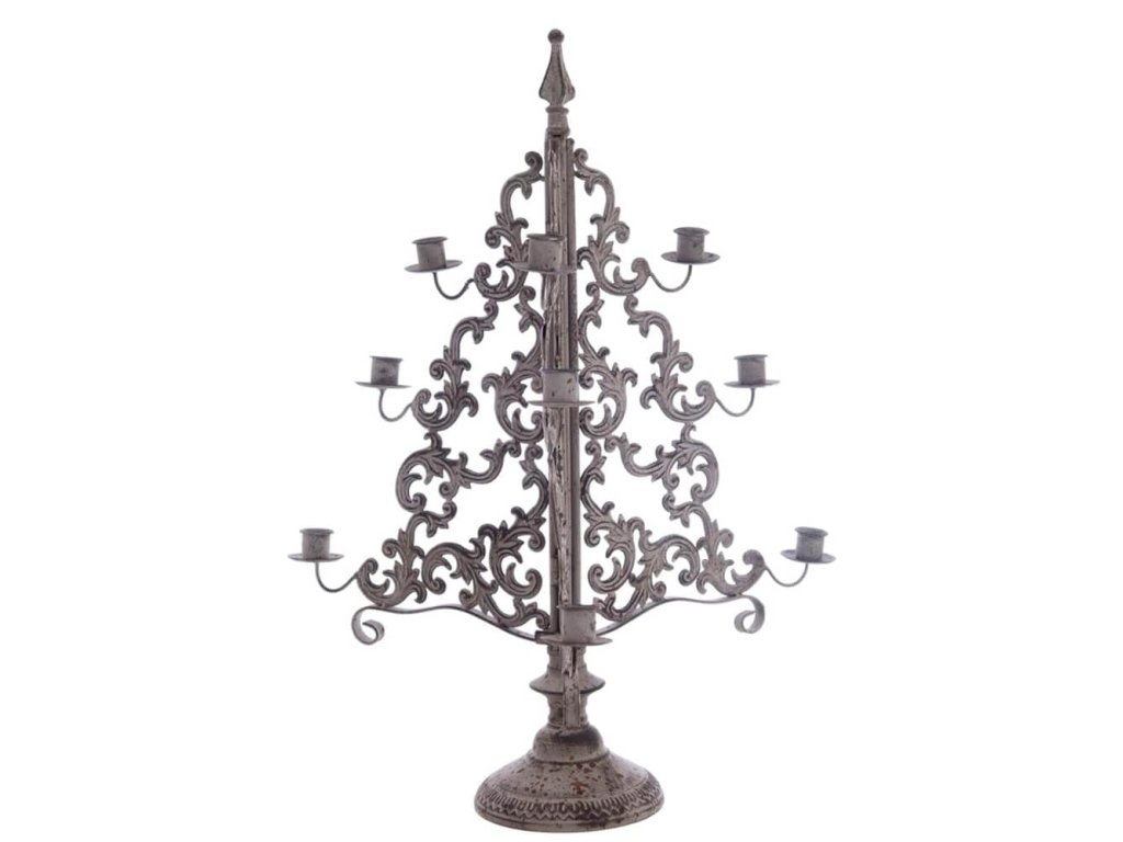 Impozantný svietnik v tvare stromčeka od talianskej značky Blanc Maricló z kolekcie Dulcis Memoria je výnimočným dekoratívnym prvkom, ktorý dodá vášmu interiéru slávnostnú atmosféru. Vyrobený z kvalitného kovu s elegantnou sivou patinou, pojme až 12 sviečok, čím vytvára nádherný svetelný efekt. Tento originálny výrobok z toskánskej dielne je navrhnutý s dôrazom na detail, remeselnú precíznosť a vintage estetiku.