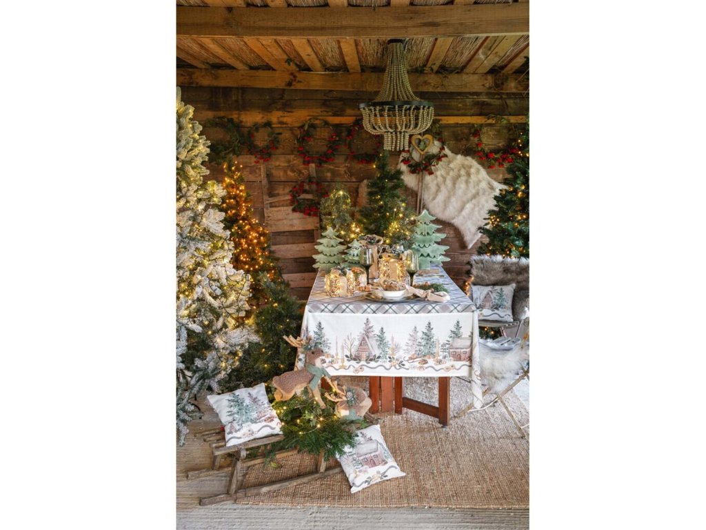 Bavlnený vianočný vidiecky runner z kolekcie Rifugio Segreto od toskánskeho výrobcu Blanc Mariclò.