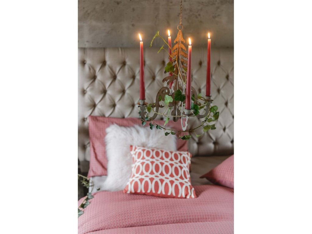 Originálny závesný svietnik v tvare stromčeka od talianskej značky Blanc Maricló z kolekcie Dulcis Memoria je výnimočným dekoratívnym prvkom, ktorý dodá vášmu interiéru romantickú a vintage atmosféru. Vyrobený z kvalitného kovu so štýlovou sivou patinou, je určený na zavesenie pomocou retiazky a pojme až 4 sviečky, čím vytvára hrejivý svetelný efekt.