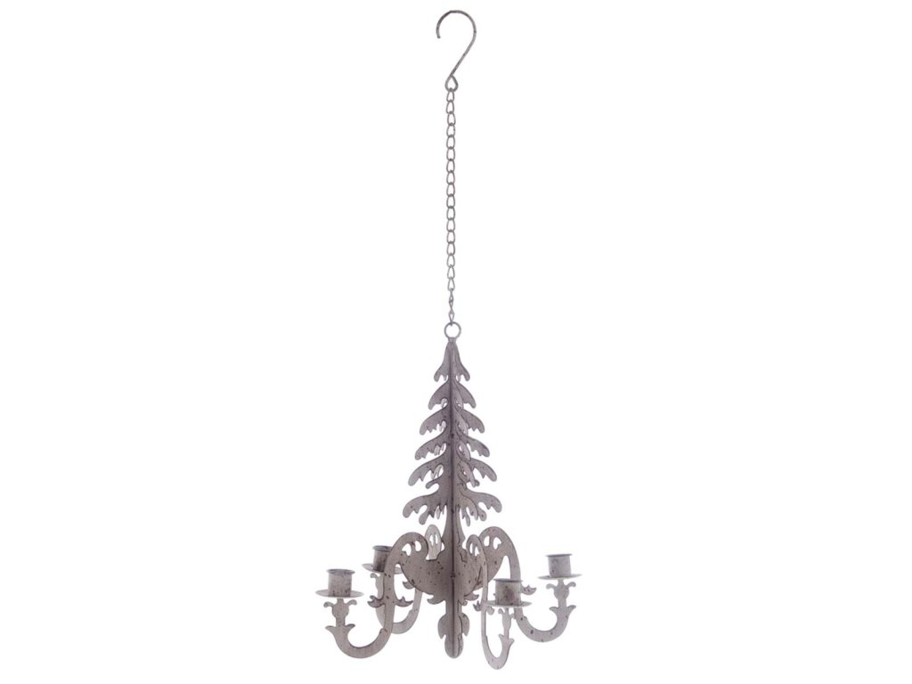 Závesný svietnik v tvare stromčeka Blanc Maricló – 29 × 29 × 35/66,5 cm, sivá patina, na 4 sviečky, kolekcia Dulcis Memoria