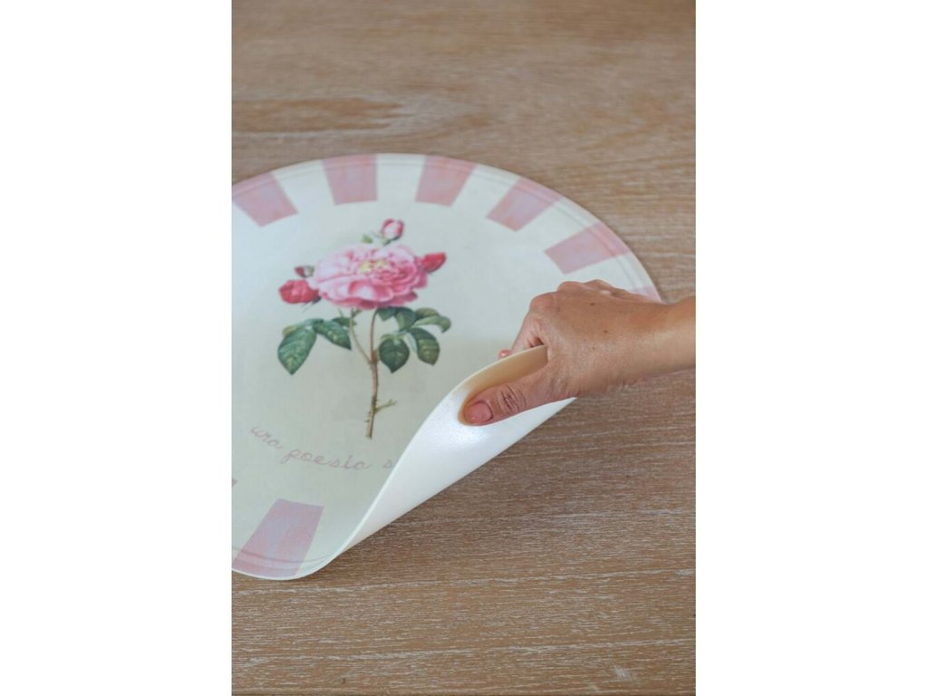 priemer: 39 cm • materiál: 100 % vinyl • vyhotovenie: ruže • štýl: vintage / vidiecky • použitie: stolové prestieranie • pôvod: Made in Italy