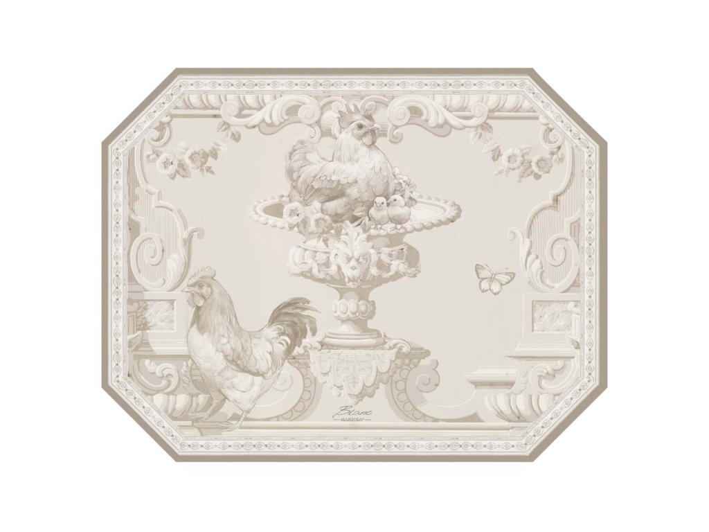 rozmery: 31 × 45 cm • materiál: vinyl • kolekcia: Coco • motív: kohútiky a sliepočky • farba: biely podklad, hnedé odtiene • štýl: vidiecky / vintage • použitie: stolové prestieranie
