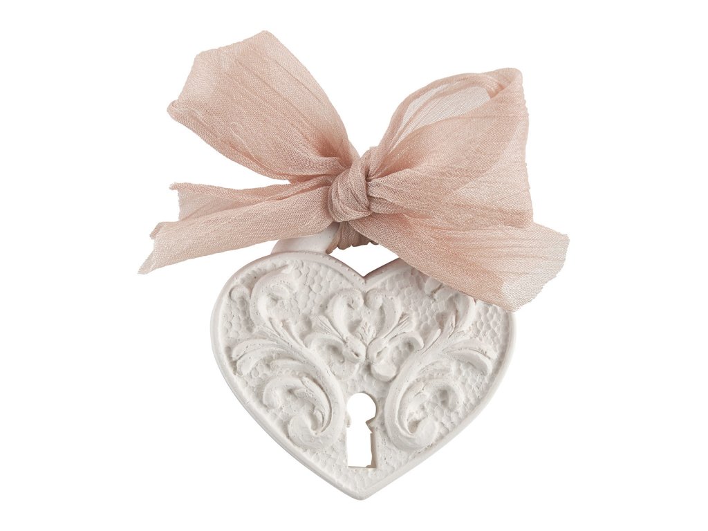 Priestorový difuzér v krásnom prevedení v tvare ksrdca s mašľou. Vôňa: SECRET DE SANTAL