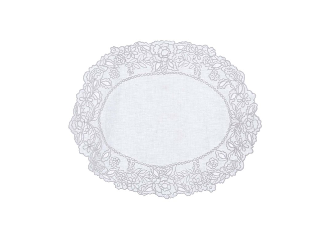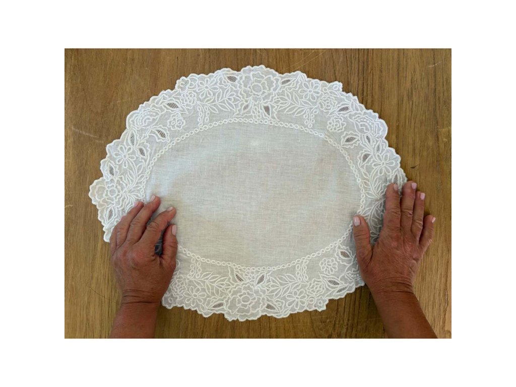 Romantické vyšívané oválne prestieranie z bavlny. Originálny výrobok z toskánskej dielne Blanc Maricló.