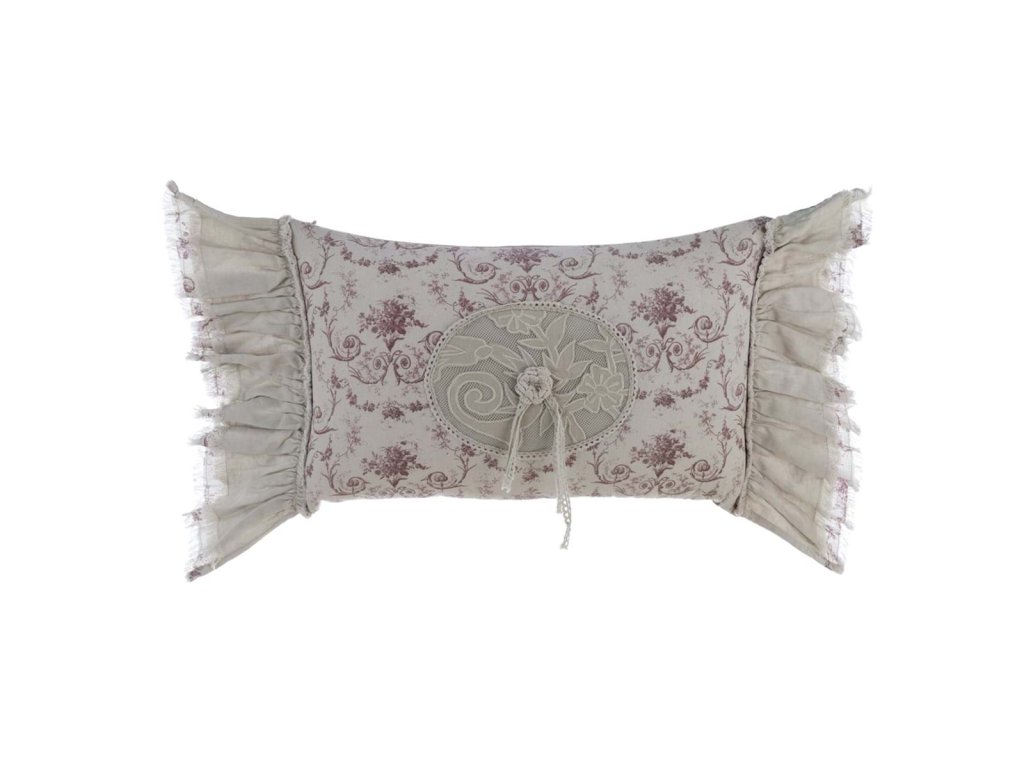 Elegantný a romantický podlhovastý vankúš s výšivkou v béžobordovej farbe od toskánskeho výrobcu Blanc Mariclò.