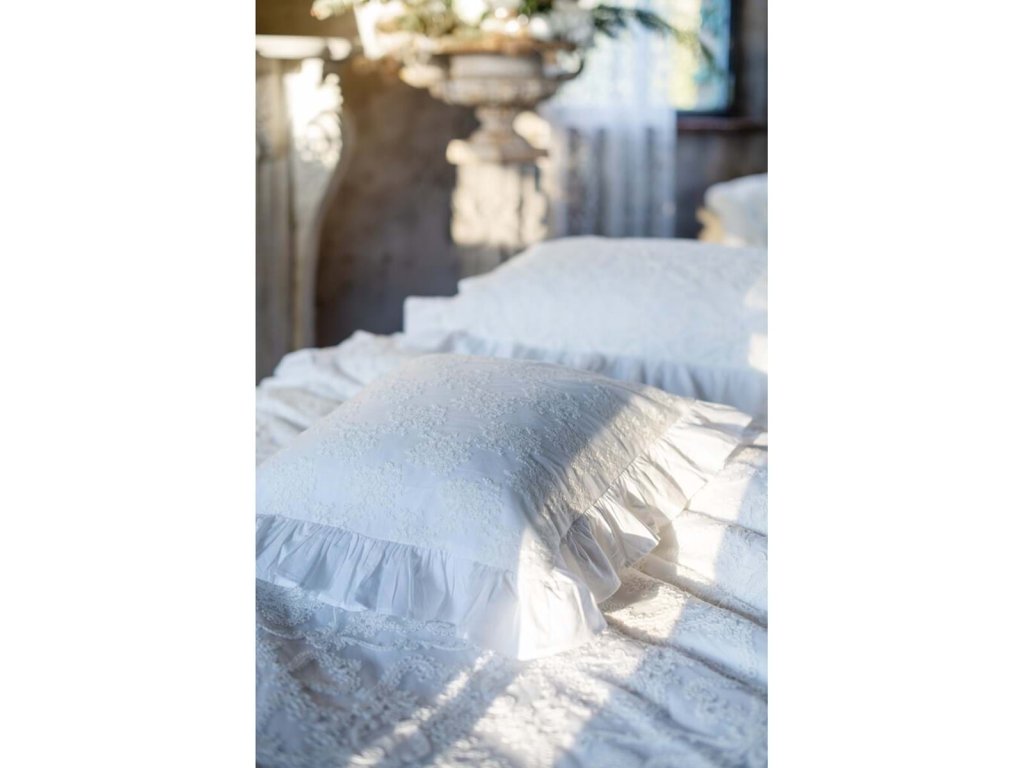 Romantický vyšívaný vankúš s volánom a výplňou. Pranie návliečky v práčke. Originálny výrobok z toskánskej dielne Blanc Maricló.