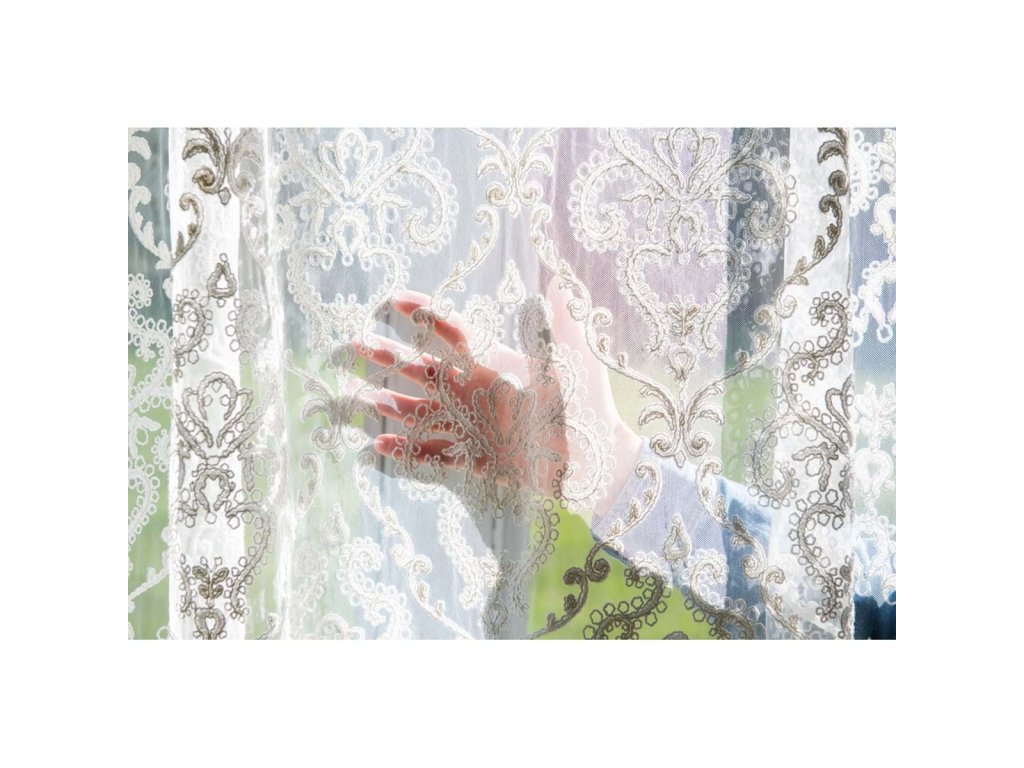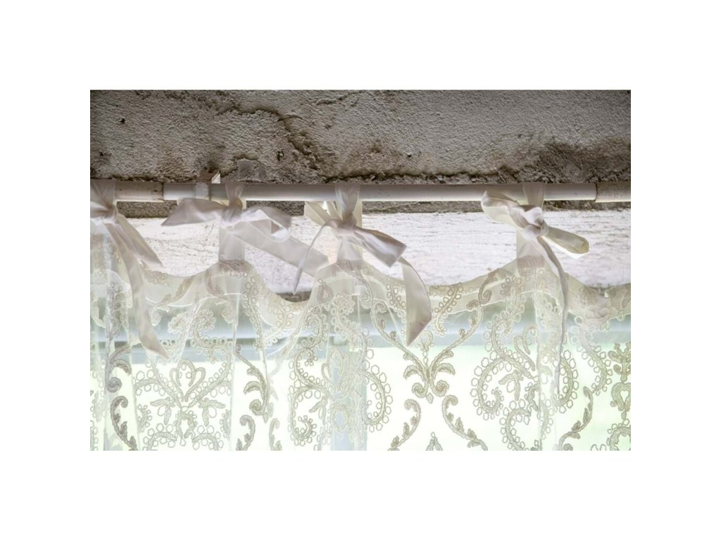 Romantický záves (1 pás) s úchytmi z látky. S vyšívanými ornamentami. Pranie v práčke. Cena za kus. Originálny výrobok z toskánskej dielne Blanc Maricló.
