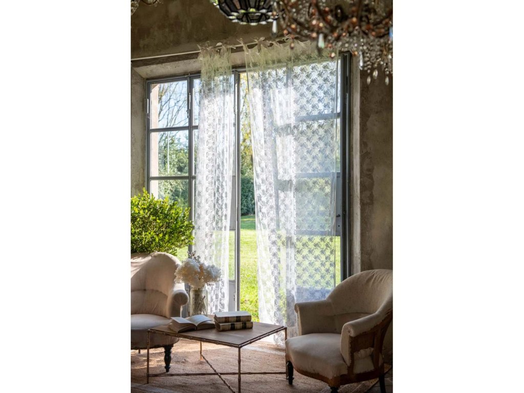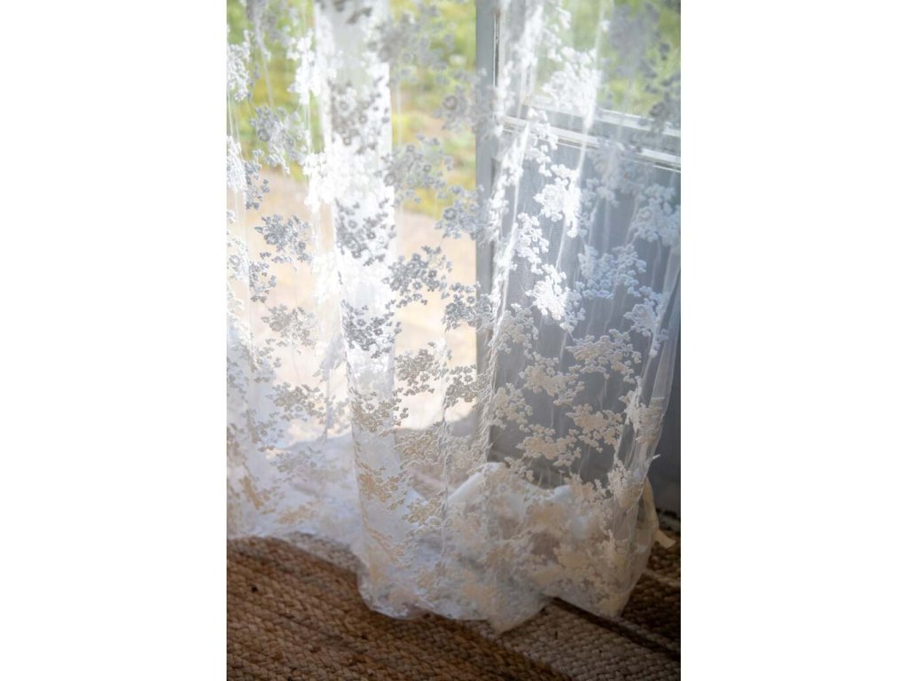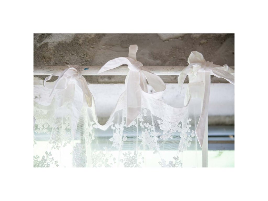 Romantický záves (1 pás) s úchytmi z látky. S vyšívanými kvietkami. Pranie v práčke. Cena za kus. Originálny výrobok z toskánskej dielne Blanc Maricló.