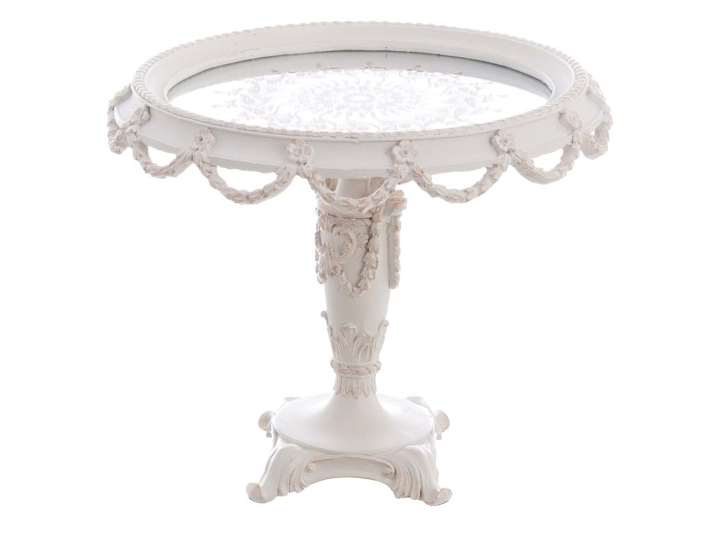 Jedinečný biely vysoký podnos so zrkadlom a s ornamentom v zlatom prevedení z polyresinu.