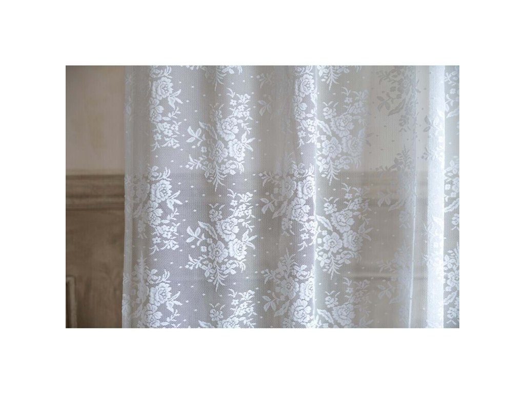 Elegantný a romantický dlhý vyšívaný záves/záclona so vzorom ružičiek.