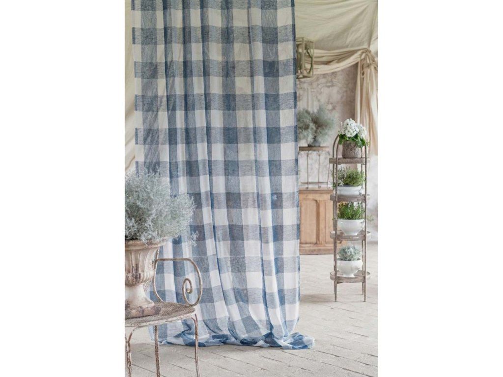 výška: 290 cm • šírka: 150 cm • materiál: 100 % polyester • farba: bielo-modrá • vzor: káro • štýl: vidiecky / provensálsky / country • použitie: interiér – záves • výrobca: Blanc Mariclò