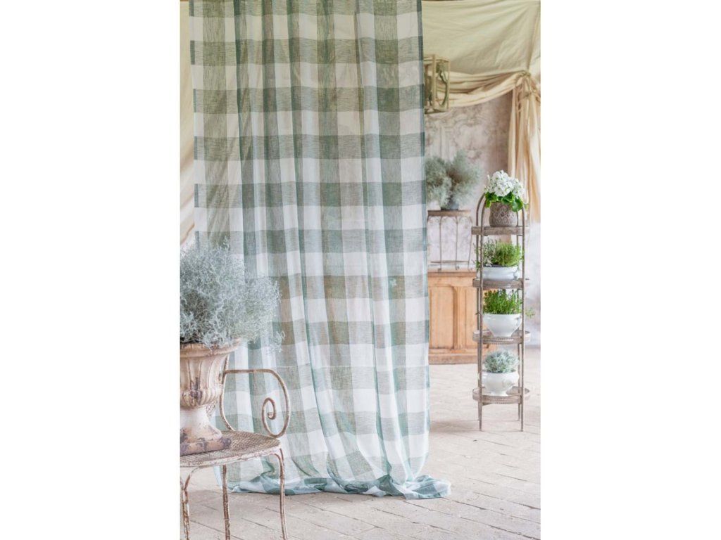 výška: 290 cm • šírka: 150 cm • materiál: 100 % polyester • farba: bielo-zelená • vzor: káro • štýl: vidiecky / provensálsky / country • použitie: interiér – záves • výrobca: Blanc Mariclò