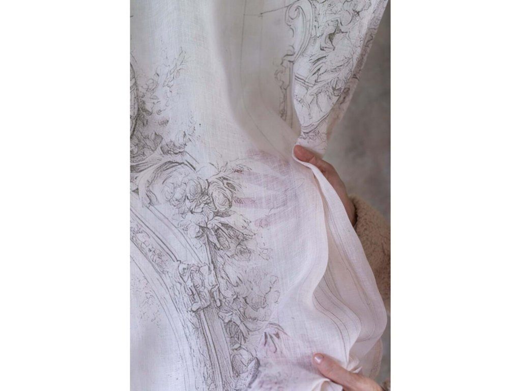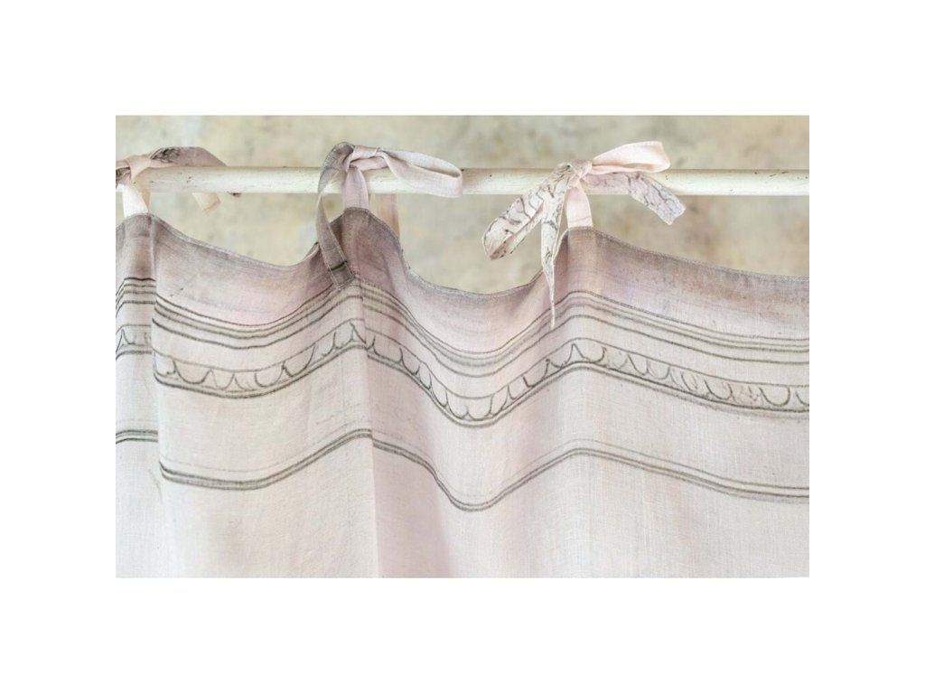 Záves je navrhnutý na uchytenie pomocou mašličiek, čo mu dodáva dekoratívny a zároveň veľmi nežný vzhľad typický pre provensálsky a vintage štýl. Kombinácia prírodných materiálov – 50 % ľan a 50 % bavlna – zabezpečuje ľahkosť, priedušnosť a prirodzenú textúru.