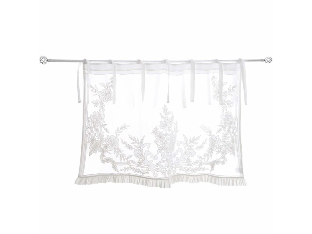 Romantický záves (1 pás) s úchytmi z látky s vyšívanou aplikáciou ornamentov. Pranie v práčke. Cena za kus.