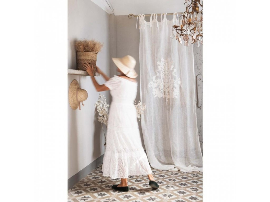 Exkluzívny záves z bavlny. Dokonale filtruje slnečné svetlo. Má elegantný, sofistikovaný charakter. Skutočne odráža atmosféru staré časy. Zdobené zložitou výšivkou. Je krásny a jedinečný. Cena je za jeden kus.