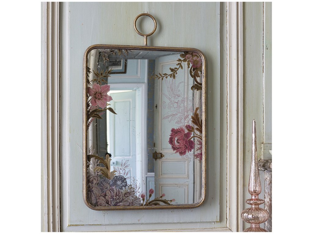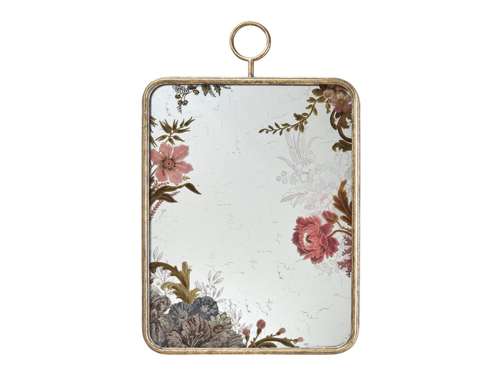 Kovové zrkadlo s jemnými kvetinovými motívmi.