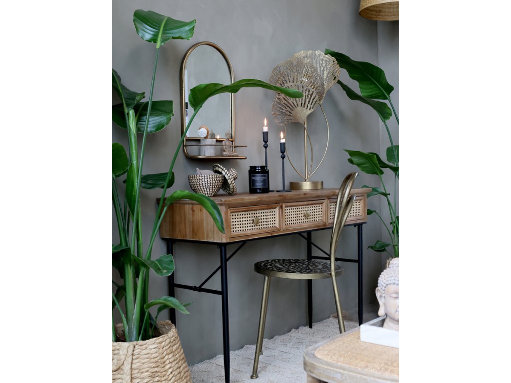 Poetický doplnok, ktorý spája vintage atmosféru, La Maison štýl a eleganciu dánskej značky Chic Antique. Toto zrkadlo s poličkou v antickej mosadzi je vyrobené z kvalitného železa, skla, jedľového dreva a MDF. Vďaka svojmu jemnému dizajnu pôsobí romanticky, nadčasovo a vnáša do interiéru nádych poetickej estetiky. Je ideálnym kúskom pre milovníkov vintage detailov a severského štýlu s francúzskym šarmom La Maison.
